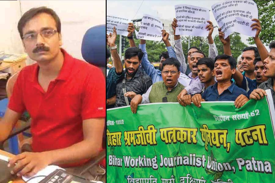 Vimal Kumar Yadav (35), a journalist who worked for a Hindi daily, was shot dead by unidentified people at his residence in Premnagar village of Bihar. The Opposition lashed out at the government and claimed the incident showed 'democracy is in danger in Bihar'.