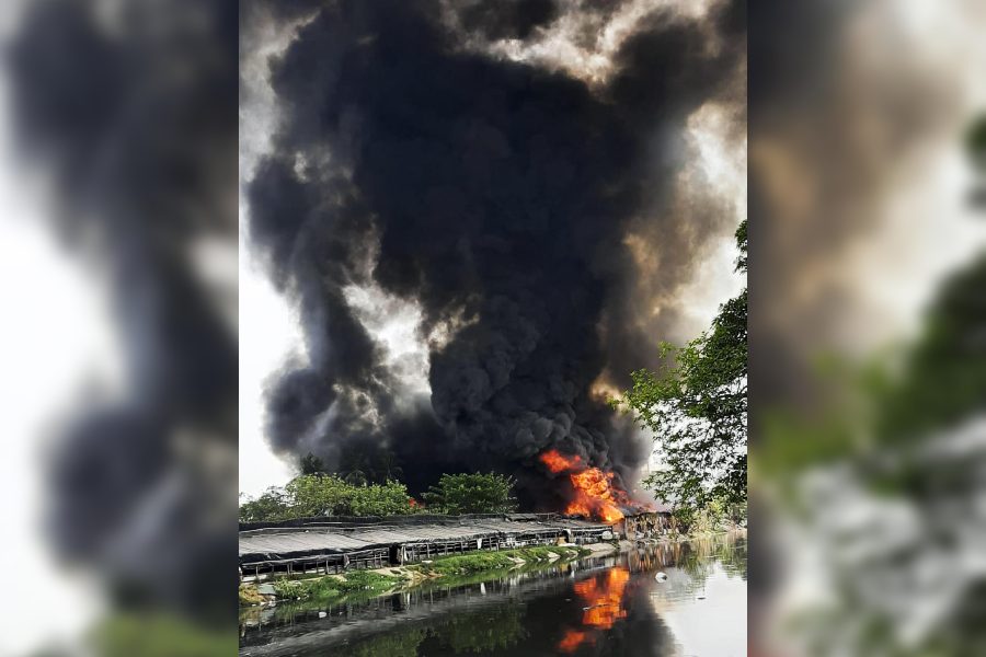 A major fire broke out in Dum Dum area of Calcutta, gutting several shanties in a slum, officials said. At least eight fire tenders have been pressed into service to douse the blaze, as thick smoke and flames were seen billowing from the shanties, which were predominantly made of plastic and other flammable materials, they said