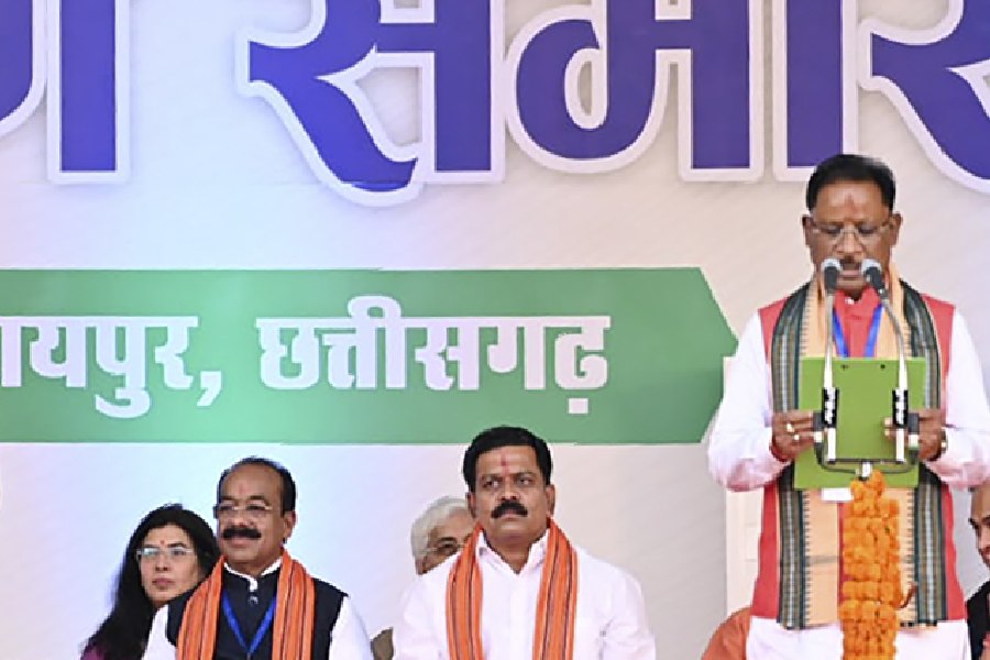 Vishnu Deo Sai, the BJP legislative party leader and MLA from Kunkuri seat, was sworn in as the chief minister of Chhattisgarh. Governor Biswabhusan Harichandan administered the oath of office and secrecy to Sai and his two deputies during a grand ceremony held at the Science College ground attended by Prime Minister Narendra Modi, BJP president JP Nadda, Union ministers Amit Shah and Nitin Gadkari, and chief ministers of some states.