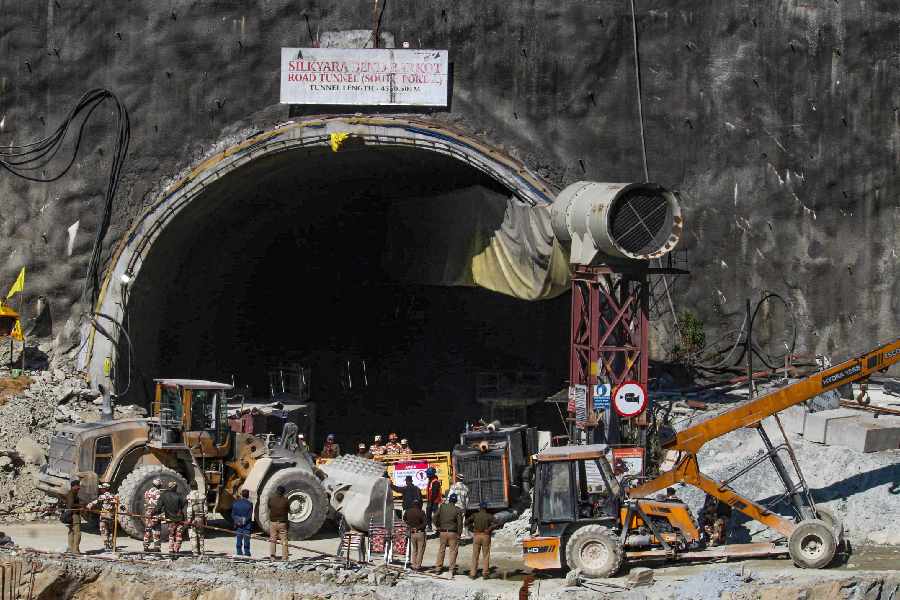 Rescue workers were set to begin drilling at the collapsed Silkyara tunnel after putting it on hold for several hours, following a snag that delayed the operation to evacuate 41 men trapped inside for 12 days, officials said. The NDRF conducted a rehearsal of how it would take its wheeled stretchers through the chute being prepared to rescue the 41 workers trapped inside the Silkyara tunnel.