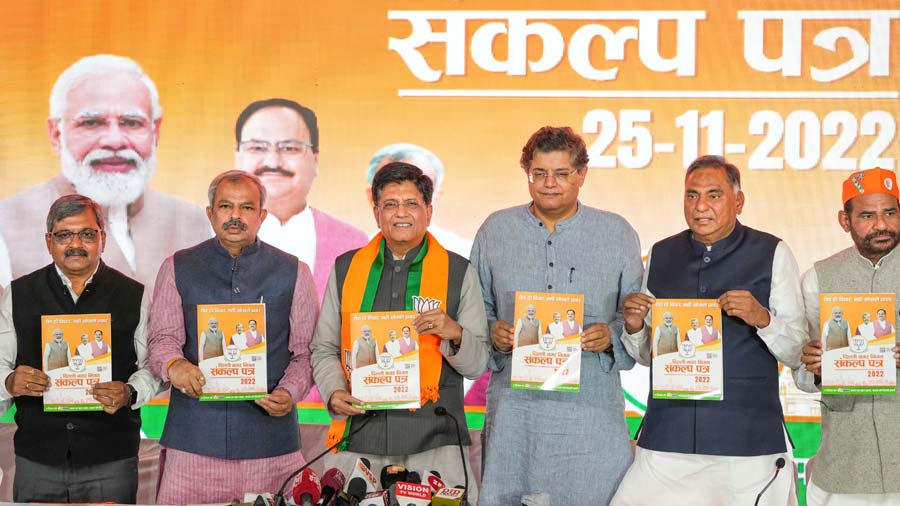 Union minister Piyush Goyal on Friday released the BJP's party manifesto 'Sankalp Patra' for Delhi MCD polls which includes bringing all services online and 100 per cent garbage processing.