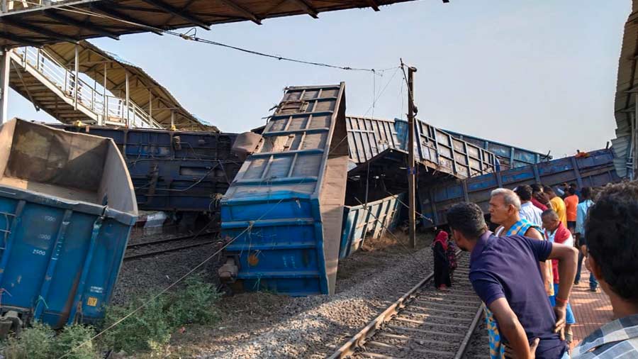 A goods train derailed at Korai railway station in Odisha's Jajpur district on Monday morning, with wagons ploughing into waiting passengers, killing at least three of them and injuring seven others, officials said.