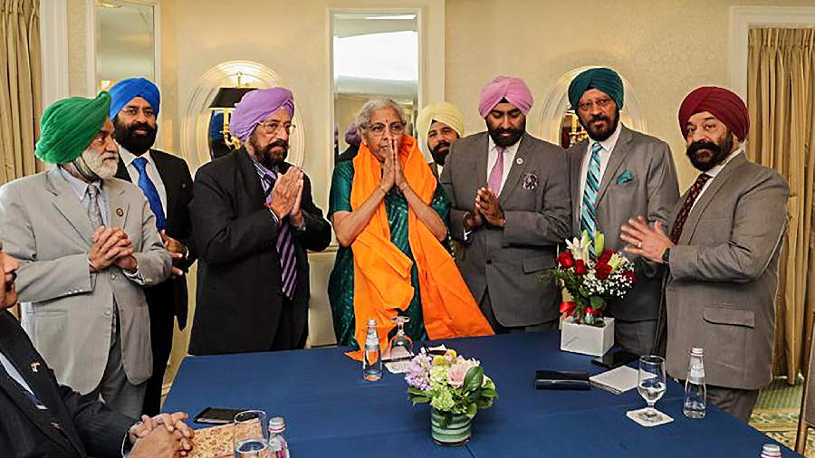 Union Finance Minister Nirmala Sitharaman in a meeting with a delegation of Sikhs of America group, in Washington D.C, USA.
