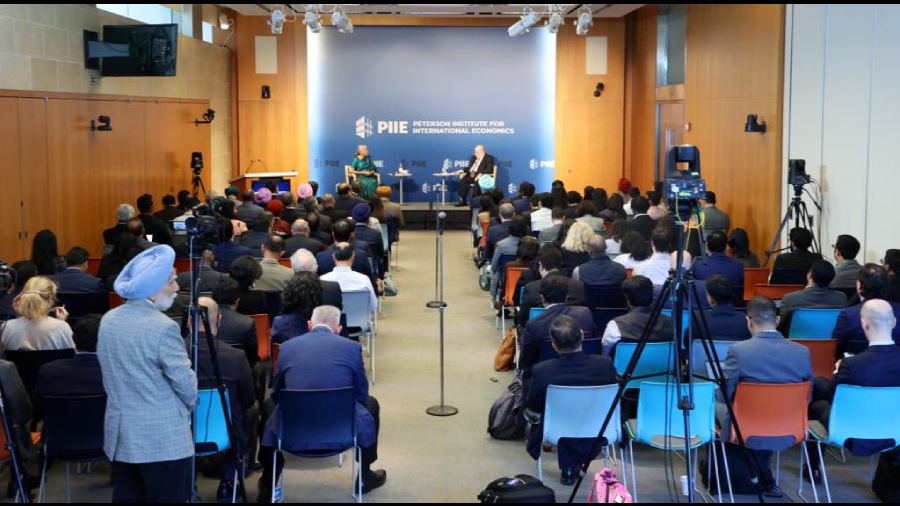 Sitharaman, who is leading a high-powered delegation, kicked off her public engagements on Monday from the prestigious Peterson Institute for International Economics by speaking on “resilience and growth of the Indian economy” and interacting with the think-tank community.