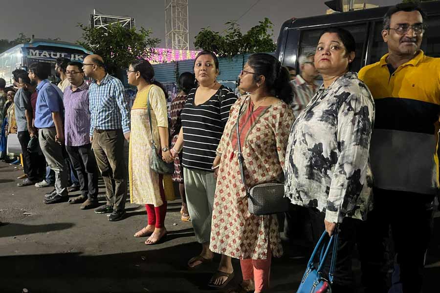 Dr Roy, who was part of the Kolkata Municipal Corporation’s medical team for the Durga Puja Carnival of the state government, wore a badge saying ‘Pratiki Onoshonkari’ [on symbolic hunger-strike].