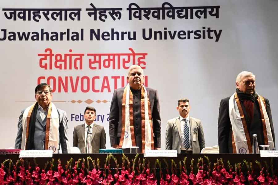In December 2023, during the fifth convocation ceremony at Jawaharlal Nehru University (JNU), Dhankhar was alleged to have veered into political territory, included criticism of the judiciary, civil society and the media.