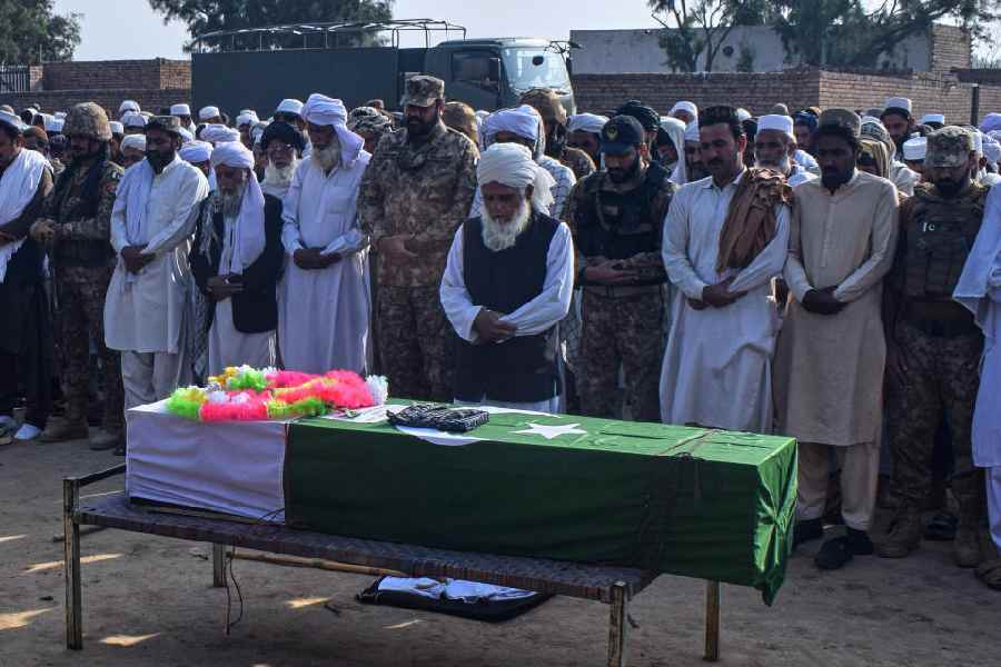People attend funeral prayer of an army soldier, killed in the cross-border clashes of Pakistan and Afghan forces(AP/PTI)