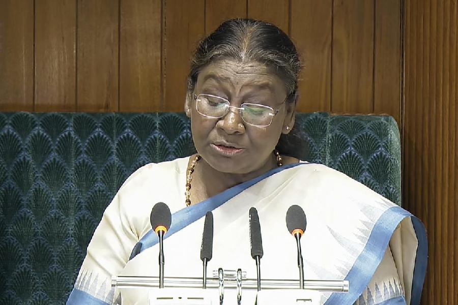 President Droupadi Murmu addresses the joint sitting of the Lok Sabha and Rajya Sabha, in New Delhi, Thursday, June 27, 2024. All citizens aged above 70 years will be provided free treatment under the Ayushman Bharat health insurance scheme, President Droupadi Murmu said. The opening of 25,000 Jan Aushadhi Kendras in the country is also progressing at a fast pace, she said while addressing the joint sitting of Parliament.