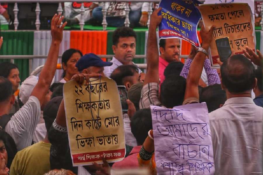 “In 2011, Didi had said that we will be given permanent jobs. Fifteen years have gone but the promise was not fulfilled,” said Rupan Sheikh, a para-teacher from North 24-Parganas Habra.