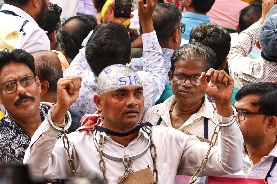 The para-teachers appeared suddenly in the fortified Metro channel where the chief minister with the who’s who of the Trinamool have been on a dharna against the deletion voters in the special intensive revision of the electoral rolls.
