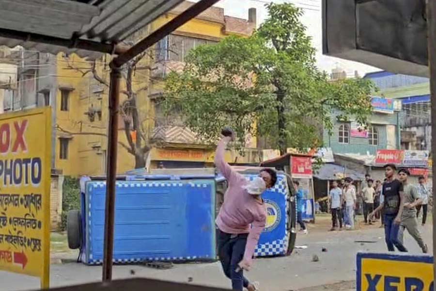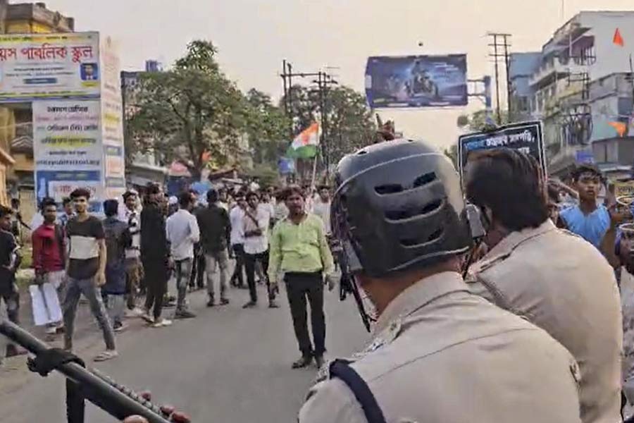 Protestors, who had gathered in large numbers on the NH-12 in the Jangipur area to protest against the Waqf Bill, hurled stones at the police who were deployed in the area, on Tuesday afternoon.