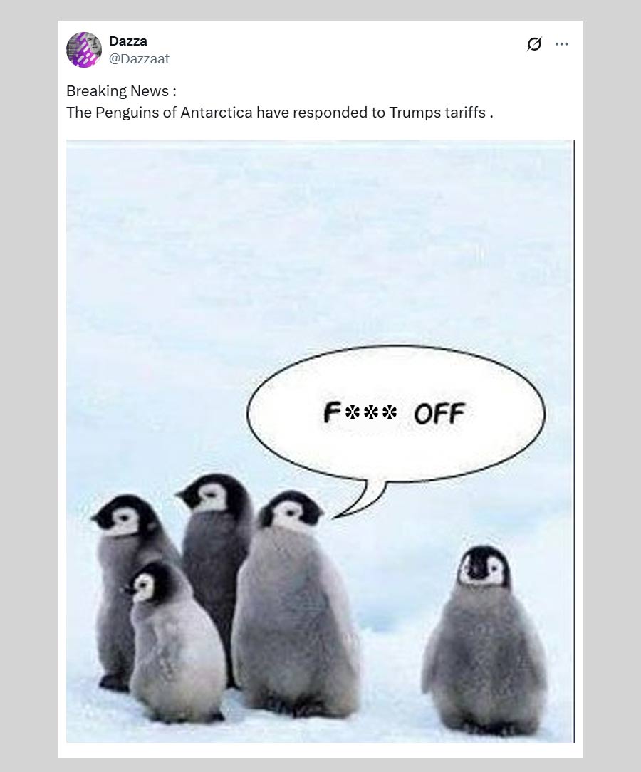 However, on social media, the announcement was met with widespread ridicule. Memes and satirical posts flooded platforms, poking fun at Trump’s unexpected economic battle with penguins and glaciers.
