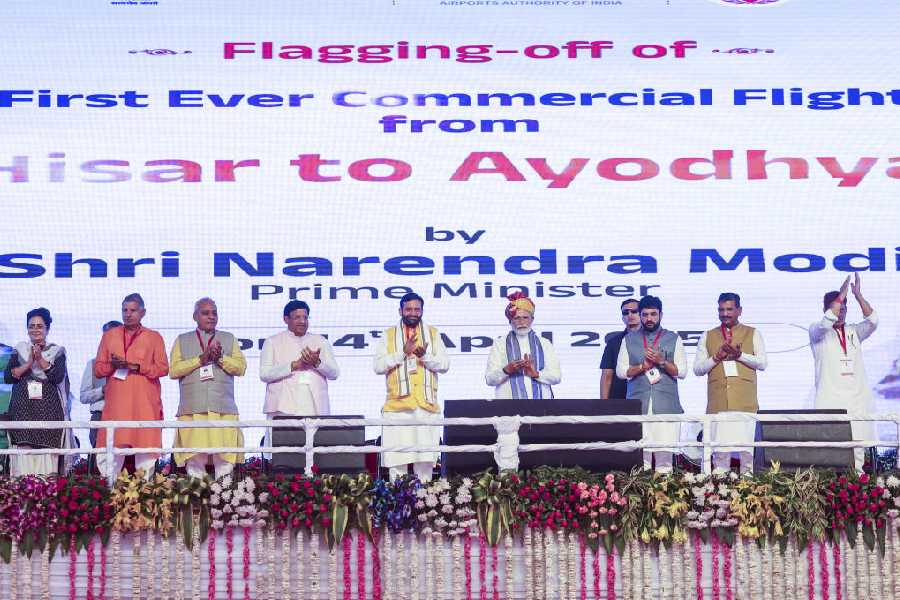 About Modi flagging off the inaugural flight from here to Ayodhya, a statement had earlier said that scheduled flights from Hisar to Ayodhya twice a week, and three flights in a week to Jammu, Ahmedabad, Jaipur, and Chandigarh will mark a significant leap in Haryana's aviation connectivity.
