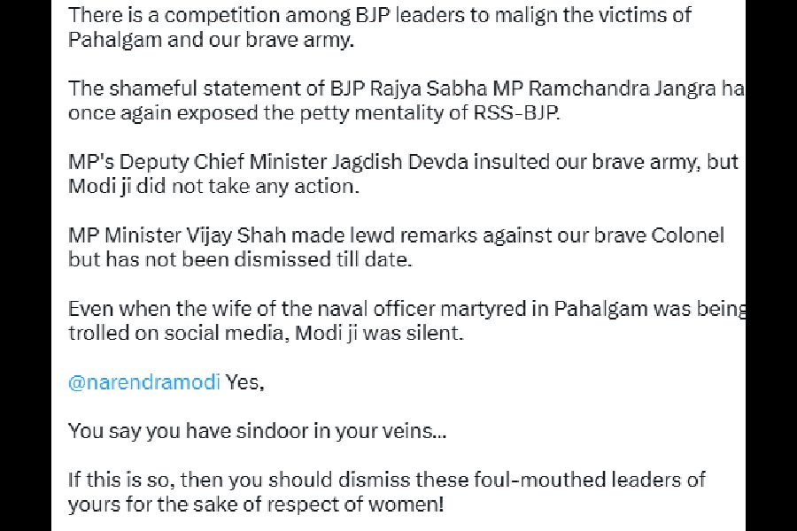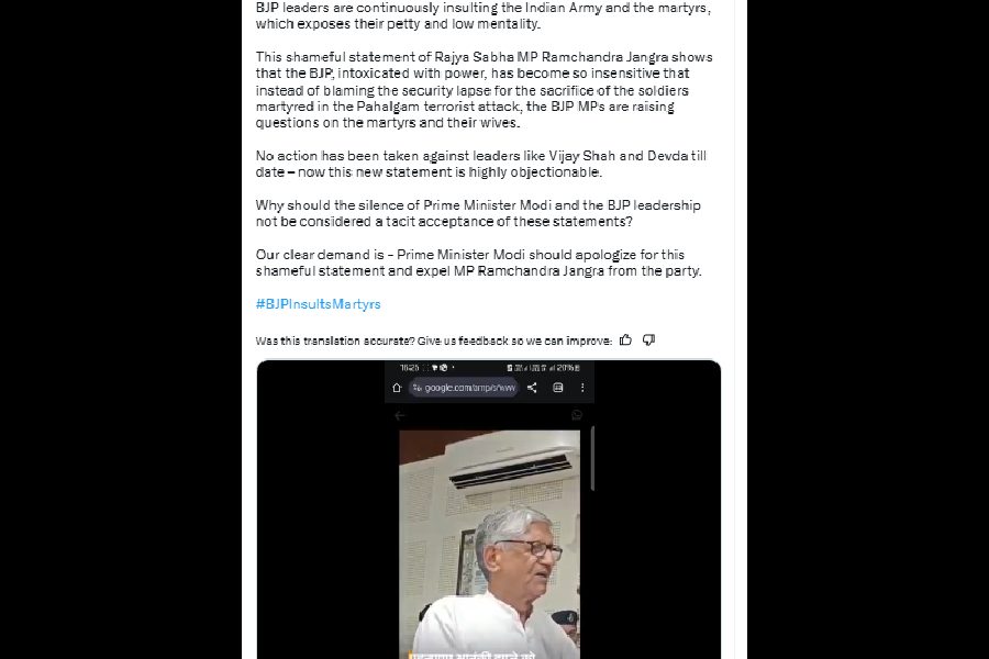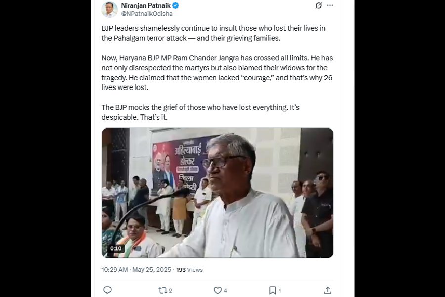 "BJP leaders shamelessly continue to insult those who lost their lives in the Pahalgam terror attack — and their grieving families. Now, Haryana BJP MP Ram Chander Jangra has crossed all limits. He has not only disrespected the martyrs but also blamed their widows for the tragedy. He claimed that the women lacked “courage,” and that’s why 26 lives were lost," he wrote in X.