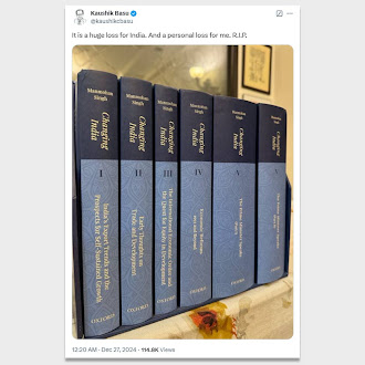 India’ former chief economic advisor Kaushik Basu posted an image of the six volumes of Changing India by Dr Manmohan Singh that Oxford University Press published.