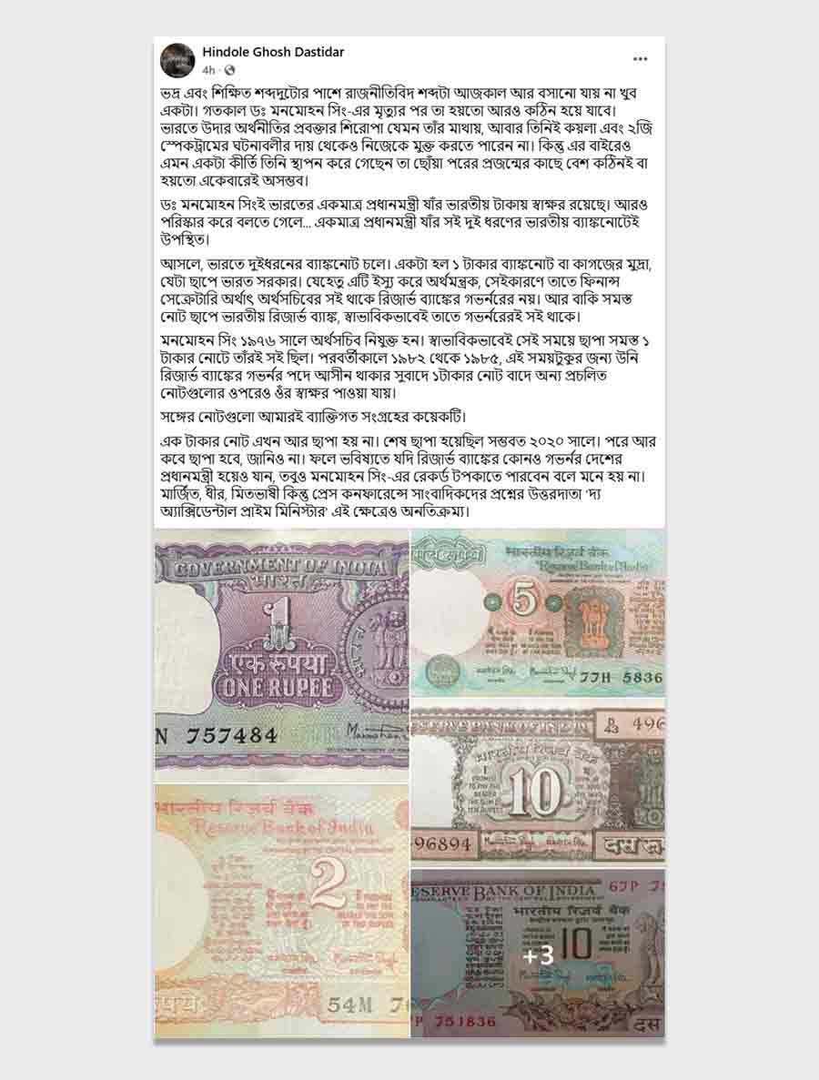 “Dr. Manmohan Singh is the only Indian prime minister whose signature appears on two types of Indian currency notes.”
