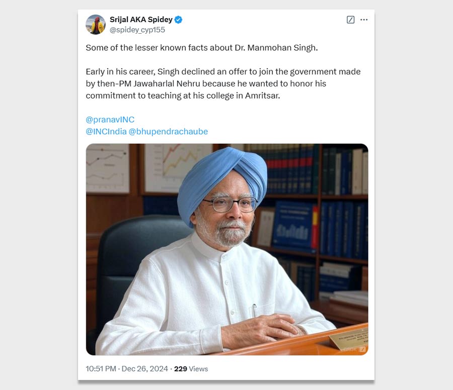 A post by Hindole Ghosh Dastidar, a graphic designer and writer, highlighted a piece of trivia about Dr. Manmohan Singh: