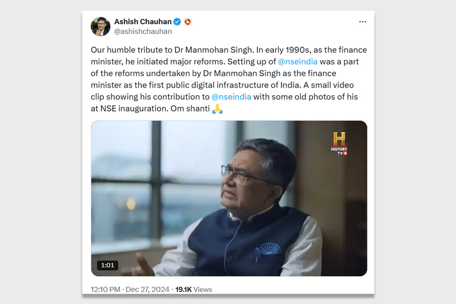 CEO of National Stock Exchange (NSE) Ashish Chauhan wrote: “ In the early 1990s, as the finance minister, he initiated major reforms. Setting up of @nseindia was a part of the reforms undertaken by Dr. Manmohan Singh as the first public digital infrastructure of India. A small video clip showing his contribution to @nseindia with some old photos of his at NSE inauguration. Om shanti.”