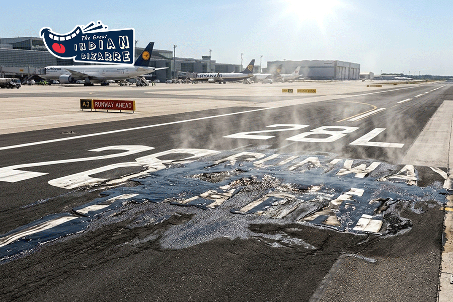 During a routine inspection at the Devi Ahilyabai Holkar Airport, officials discovered that the early onset of summer had loosened and melted the runway’s bitumen layer ‘beyond prescribed standards’ which could be bureaucratic language for ‘the runway has melted into the consistency of freshly spat out chewing gum.’