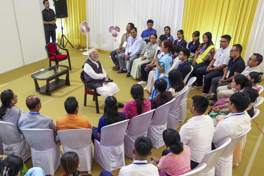 Outside, protesters from the youth wings of the Congress and Manipur Peoples’ Party (MPP) held placards and shouted slogans, dismissing the PM’s visit as a “political ploy” and insisting it was “not aimed at restoration of peace and normalcy.”