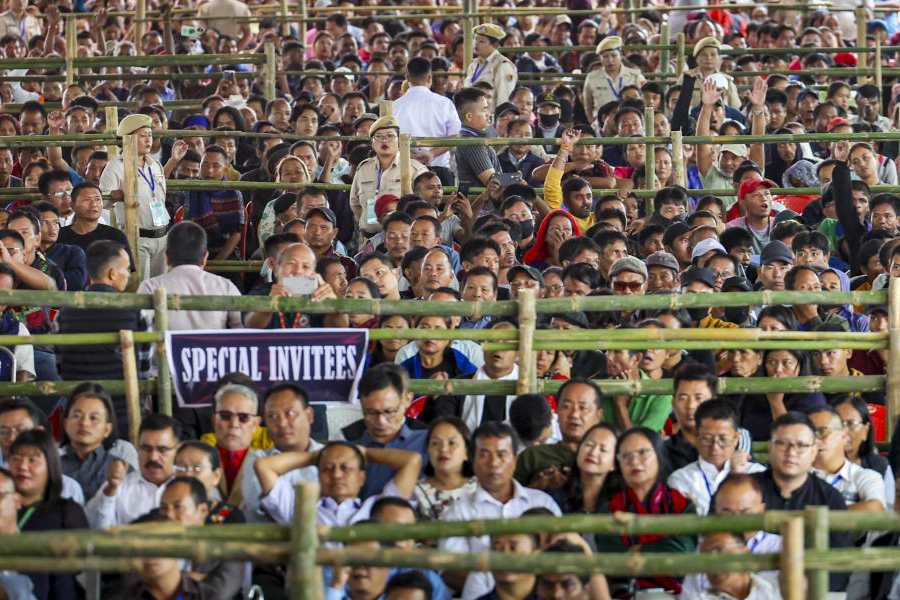 In this image received on Sept. 13, 2025, Supporters during a public meeting of Prime Minister Narendra Modi, in Churachandpur, Manipur. (PTI)