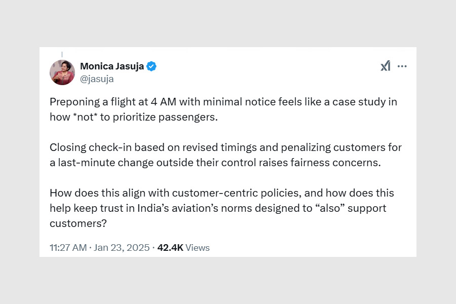 “We promptly communicated these schedule adjustments to passengers upon implementation. Our teams made every effort to assist passengers arriving after the revised timings. In one instance, a passenger who arrived beyond the original flight time was extended the option of an alternative flight with minimal charges as a gesture of goodwill,” the airline said, referring to Gupta’s case.