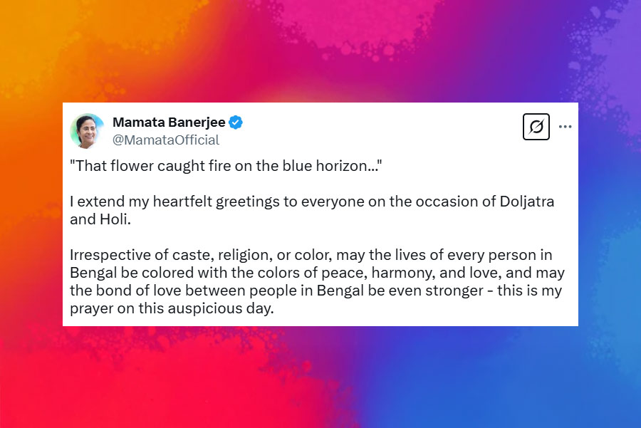 West Bengal Chief Minister Mamata Banerjee invoked poetry, writing, "That flower caught fire on the blue horizon..." and extended greetings, calling for unity beyond caste, religion, or color.