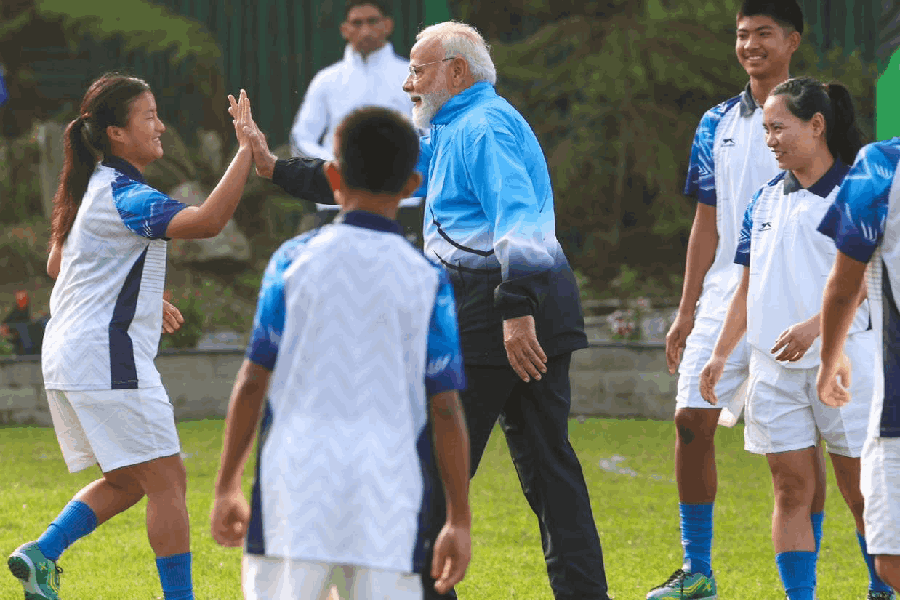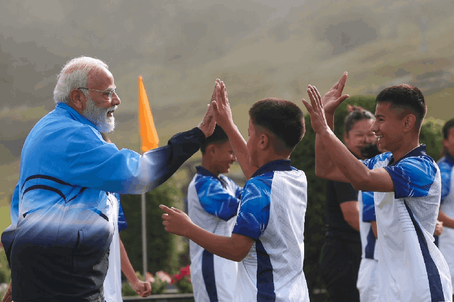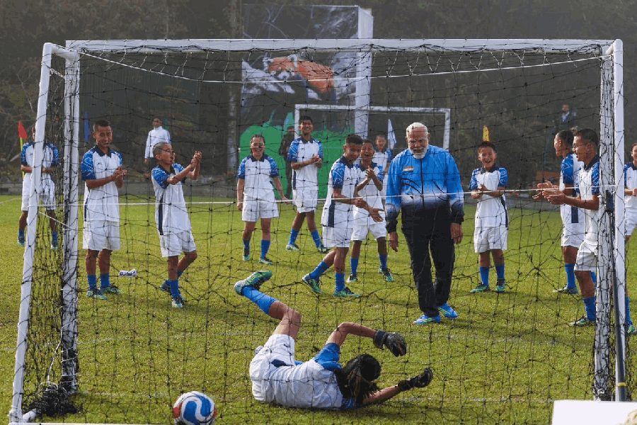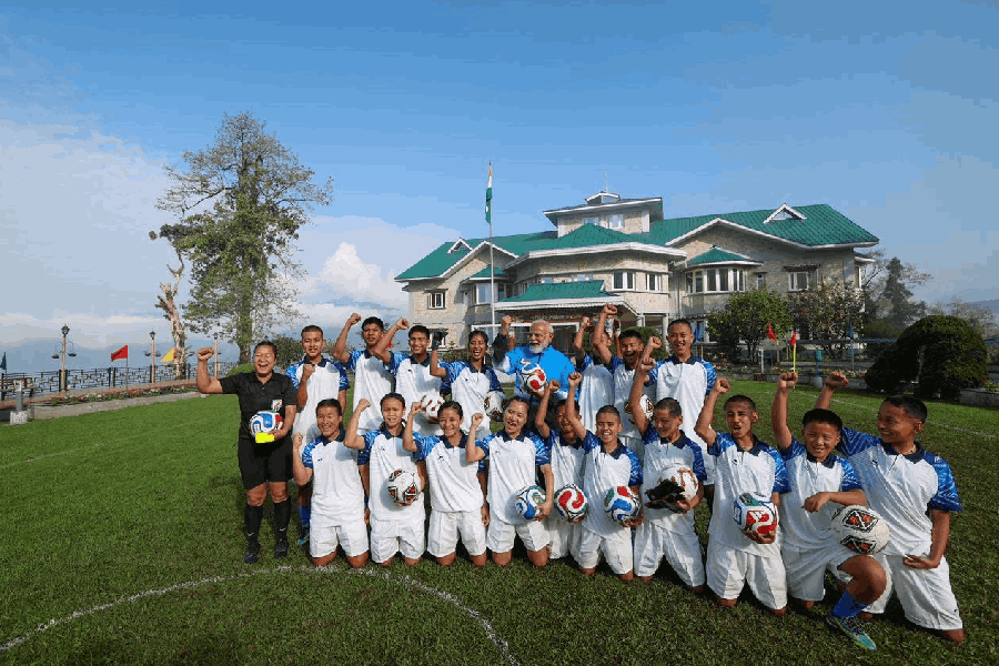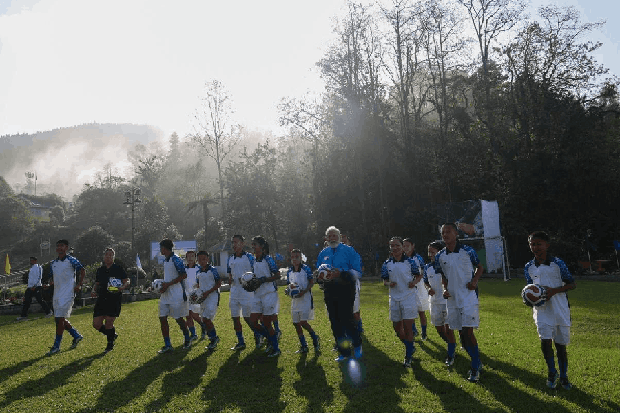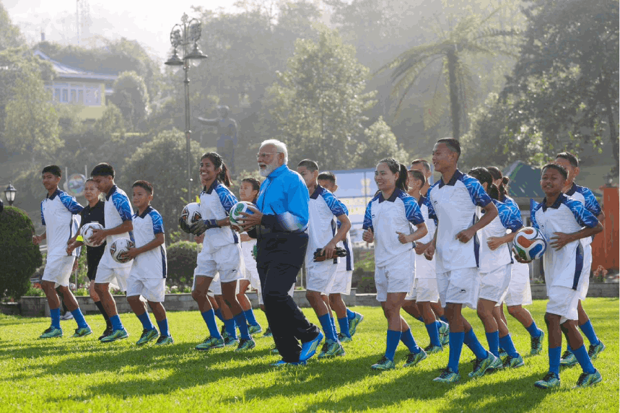 "Nothing like playing some football with my young friends in Sikkim on a lovely Gangtok morning! Clearly, an energising football session with these youngsters!" the PM said on X.