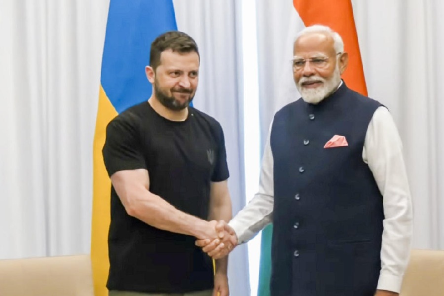 Prime Minister Narendra Modi and Ukraine's President Volodymyr Zelenskyy during a bilateral meeting on the sidelines of the G7 Summit in Apulia, Italy, June 14, 2024. It is learnt that Zelenskyy briefed Modi on various aspects of the Russia-Ukraine conflict. Modi had met Zelenskyy on the sidelines of the previous G7 summit in Hiroshima in May last year as well.