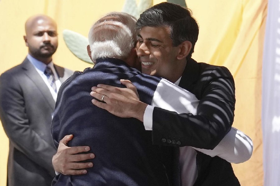 Prime Minister Narendra Modi and his British counterpart Rishi Sunak during a bilateral meeting on the sidelines of the G7 Summit, in Italy, Friday, June 14, 2024. Modi and Sunak are believed to have discussed bilateral relations and issues of common interests. Sunak and Modi last met in person at the G20 Summit in New Delhi last September, when they had agreed to accelerate the FTA talks with the hope of signing off before India's general election.