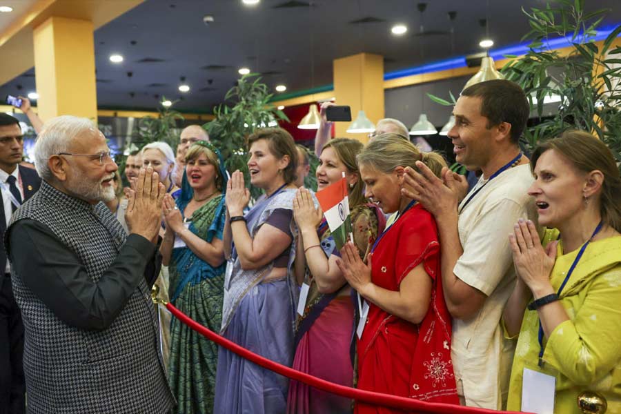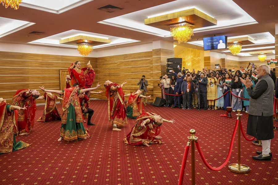 A team of Russian artists, dressed in traditional Indian attire, presented a Russian dance as Modi watched it with keen interest.