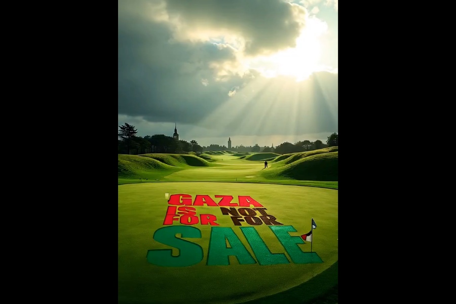 In another post on X, they posted a video showing the words “Gaza is not 4 sale” on the greens.