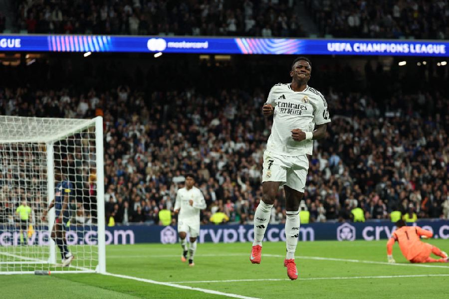 Vinícius scored his 99th and 100th goals, according to UEFA, moving him into third place in the top Brazilian scorers in the Champions League with 28 goals in the competition. Neymar leads the way with 43, with Kaká second on 30.