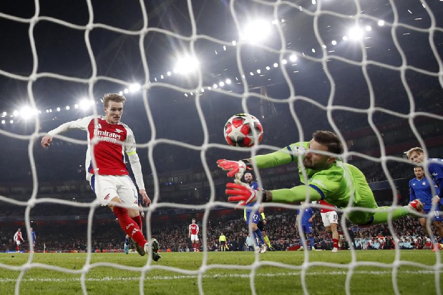 Captain Odegaard put the icing on the cake of a clinical Arsenal display with a third in stoppage time -- his first goal in 14 games in all competitions.