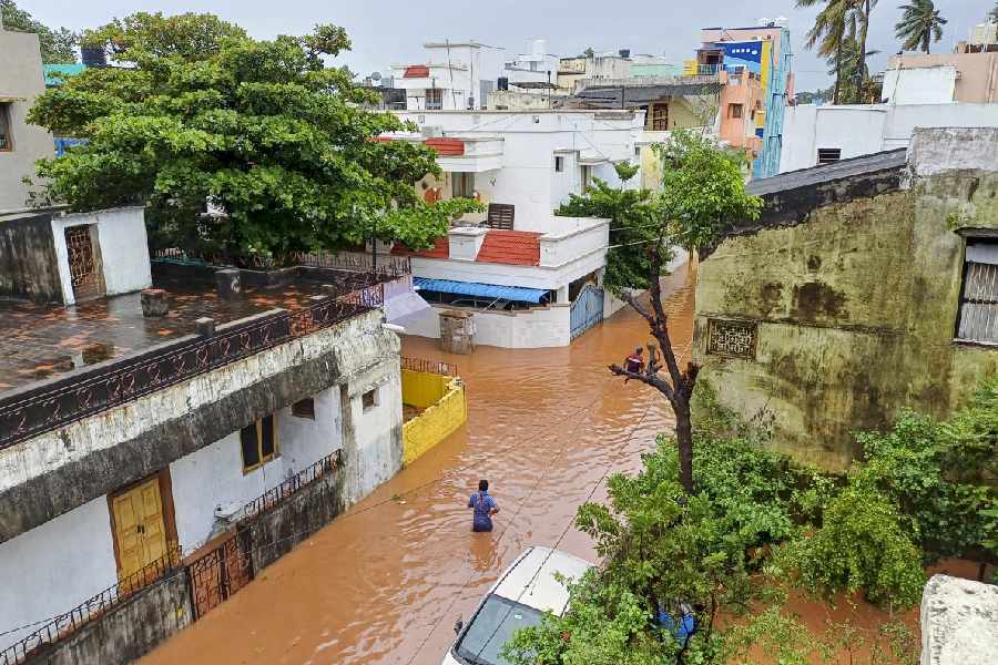 Normal life was crippled in Puducherry on Sunday due to heavy rains that lashed the union territory in the wake of Cyclone Fengal, which crossed the coast here on November 30 night.