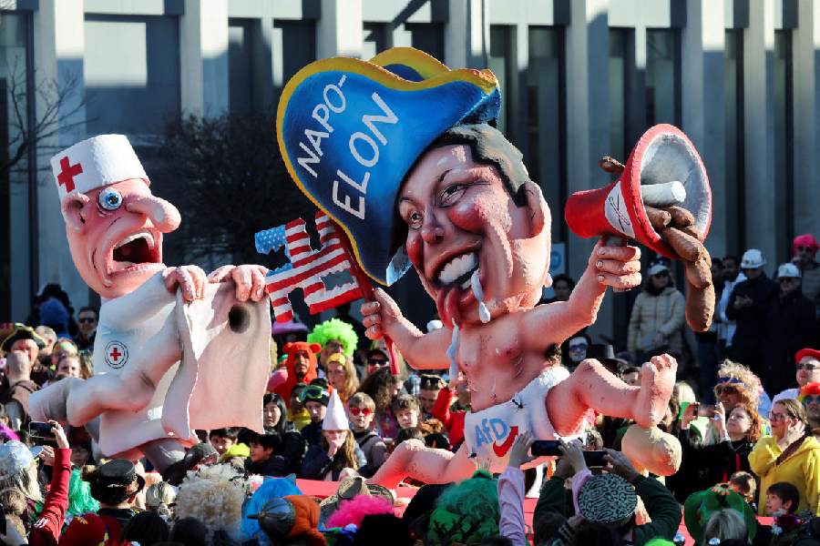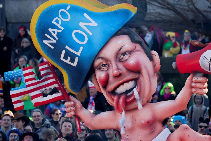 A carnival float by artist Jacques Tilly depicting tech billionaire Elon Musk takes part in the traditional "Rosenmontag" Rose Monday carnival parade in Duesseldorf, Germany, March 3, 2025. (Reuters)