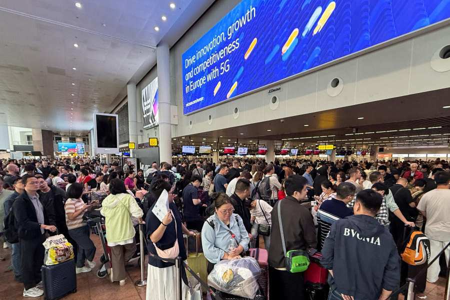 Brussels Airport was using iPads and laptops to check passengers in online. Of roughly 550 departing and arriving flights, 60 had to be cancelled on Monday, it said.