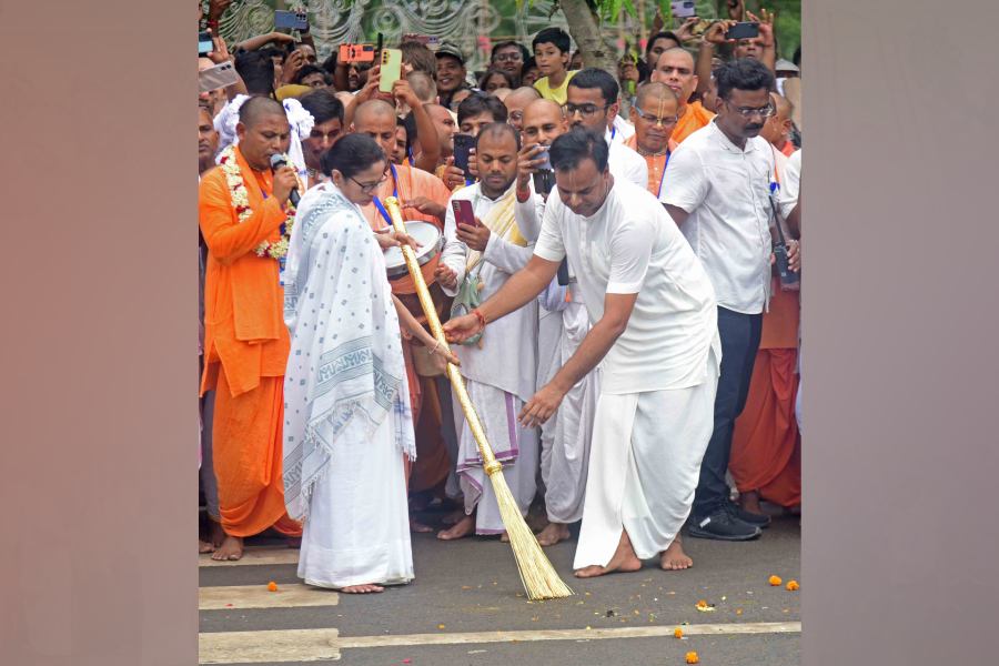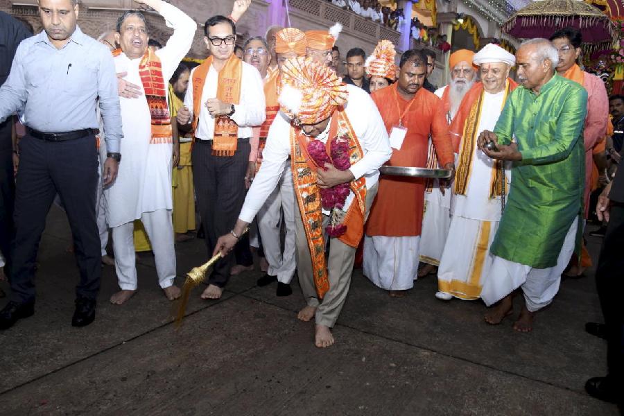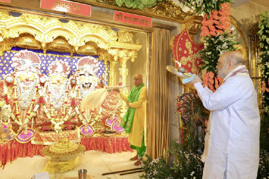 Union Home Minister Amit Shah and his family members participated in the morning prayers at the Jagannath temple, while Gujarat Chief Minister Bhupendra Patel performed ‘pahind vidhi’, a traditional ceremony of symbolic cleaning of roads by a golden broom.