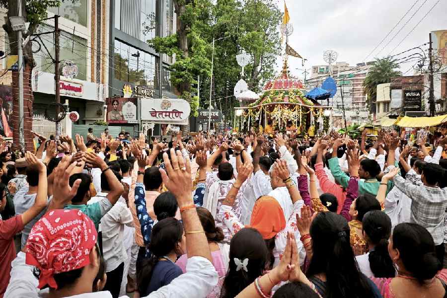 The grand procession of the three chariots rolled on from the 400-year-old temple, and it is expected to return by 8 pm after making its way through the old city, including a few communally sensitive areas.