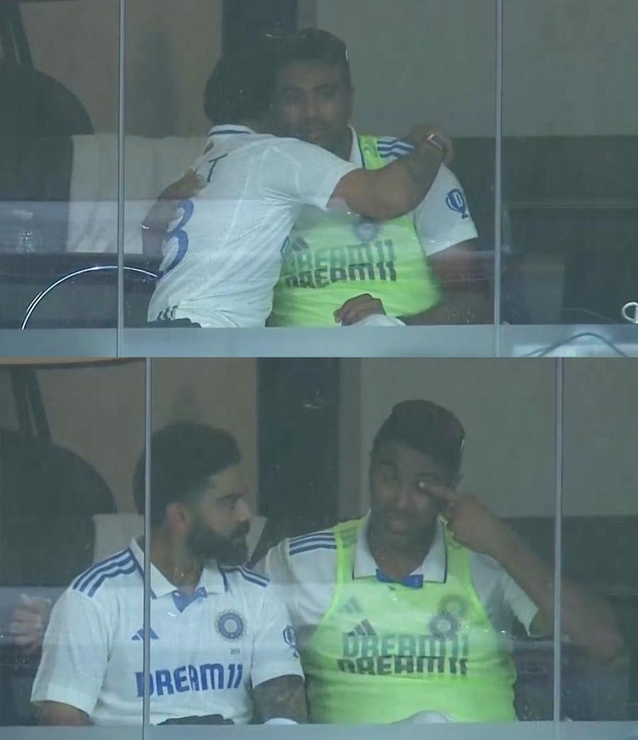 Kohli had his arm around the senior bowler's shoulder and Ashwin was seen wiping his eyes before breaking into a chuckle.
