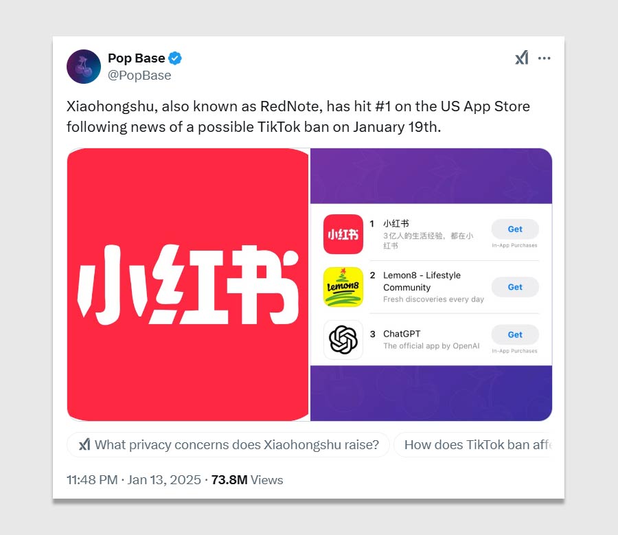 RedNote’s popularity has skyrocketed in the US overnight, soaring to the #1 spot on the Apple App Store as users flock to the platform.