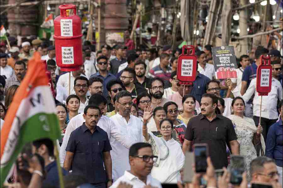 Mamata on Monday led a rally in the city demanding protection of democratic rights of the people of the state and against the LPG crisis.