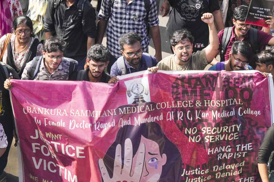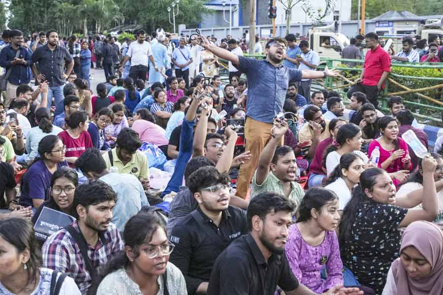The protesting junior doctors sat in front of Swasthya Bhawan, the health department headquarters, in Bidhannagar aka Salt Lake all night, demanding justice for the rape and murder of their colleague at RG Kar Medical College and Hospital on August 9 and a total clean-up of the state’s health administration. Despite the state government's efforts to reach a resolution, the doctors have vowed to continue their protest until their demands are met. On Wednesday, BJP leader Agnimitra Paul was greeted with chants of “go back” when she arrived at the scene of protest. She later claimed she was going to visit the BJP office nearby.