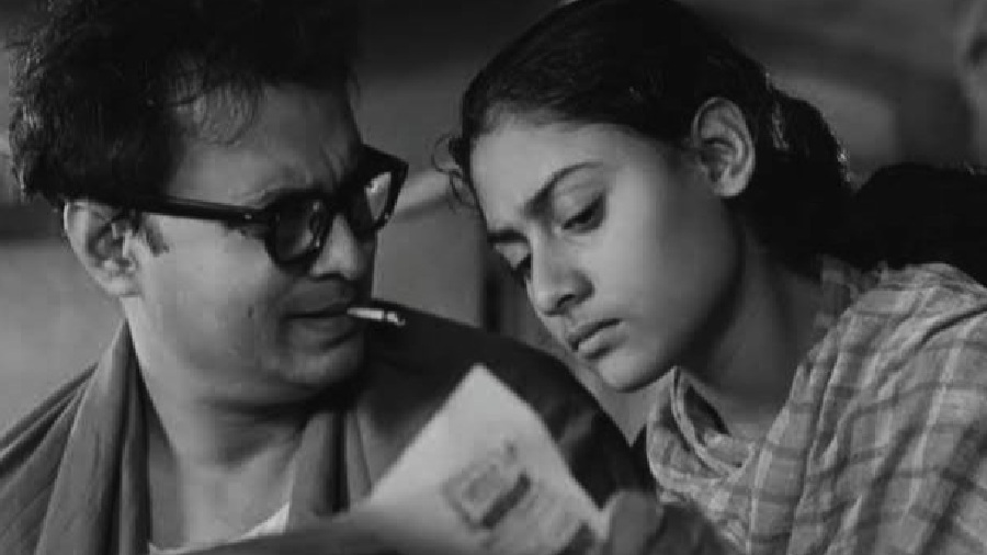 Mahanagar (1963), was based on a short story by Narendranath Mitra and it depicted the struggles of a middle-class family. Arati transforms from a stay at home wife to a working wife to share the burden of her extended family. Her husband and her her in-laws were extremely shocked by Arati's decision.