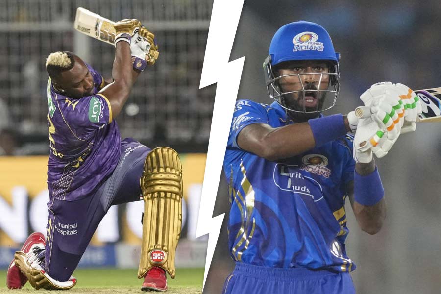 Russell's explosive hitting can change the game rapidly, though Pandya's dual threat with bat and ball offers Mumbai a versatile counter.
