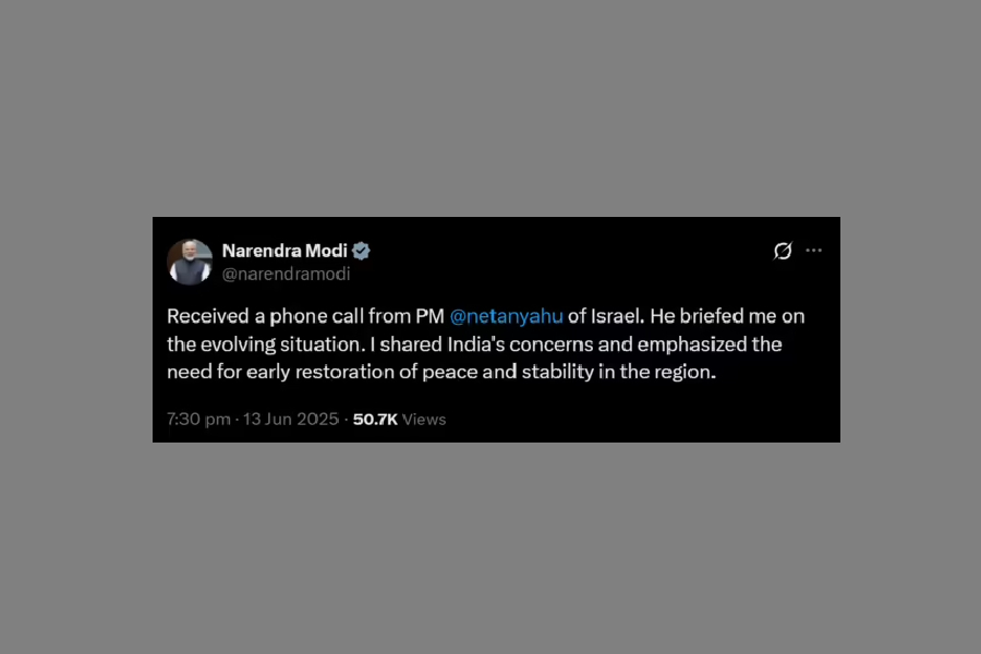 In a post on X, PM Modi said, "Received a phone call from PM Netanyahu of Israel. He briefed me on the evolving situation. I shared India's concerns and emphasized the need for for early restoration of peace and stability in the region."