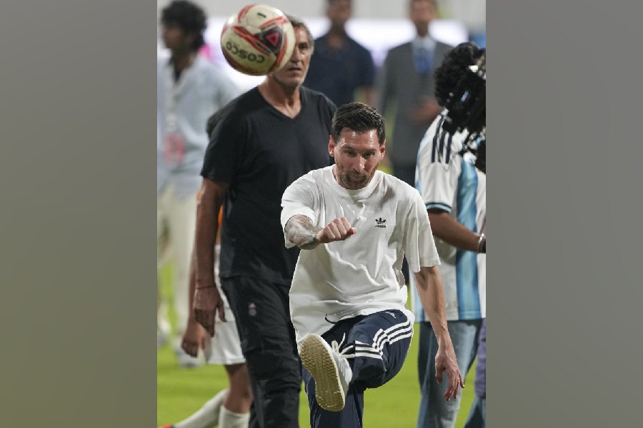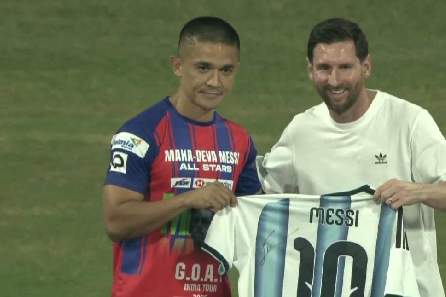 Messi also handed his Argentina jersey to Sunil Chhetri, drawing loud applause. The programme included a short penalty shoot-out. Chhetri went first and missed. Messi followed and scored, prompting chants of “Visca Barca” from parts of the crowd.
