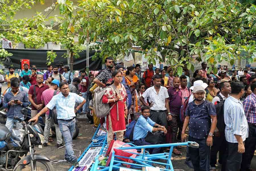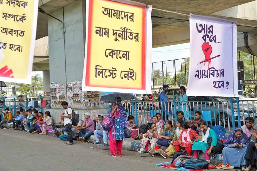 On Thursday afternoon, hundreds of sacked schoolteachers, men and women, had assembled outside Bikash Bhawan in Salt Lake. Their demand, they will not appear for another round of examination, as ordered by the Supreme Court.