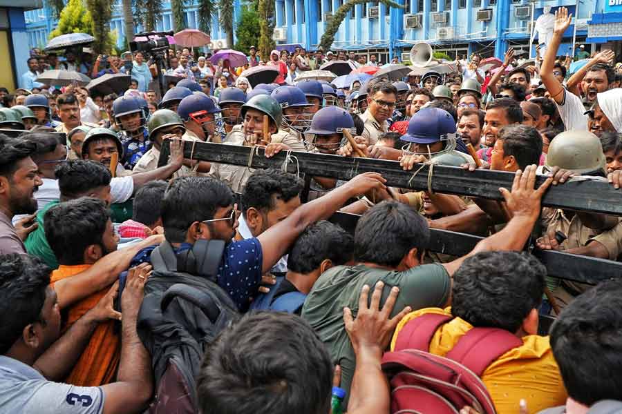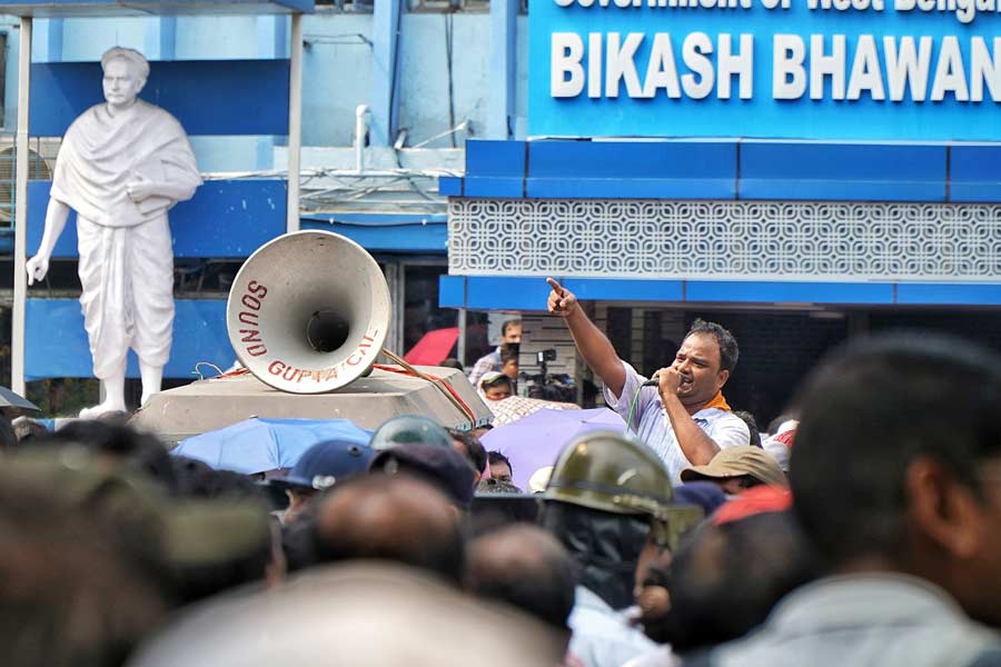 The gates of Bikash Bhawan, the mainstay of Bengal’s education policies, were rocked by agitating former government school teachers caught between the law and a corrupt recruitment system.