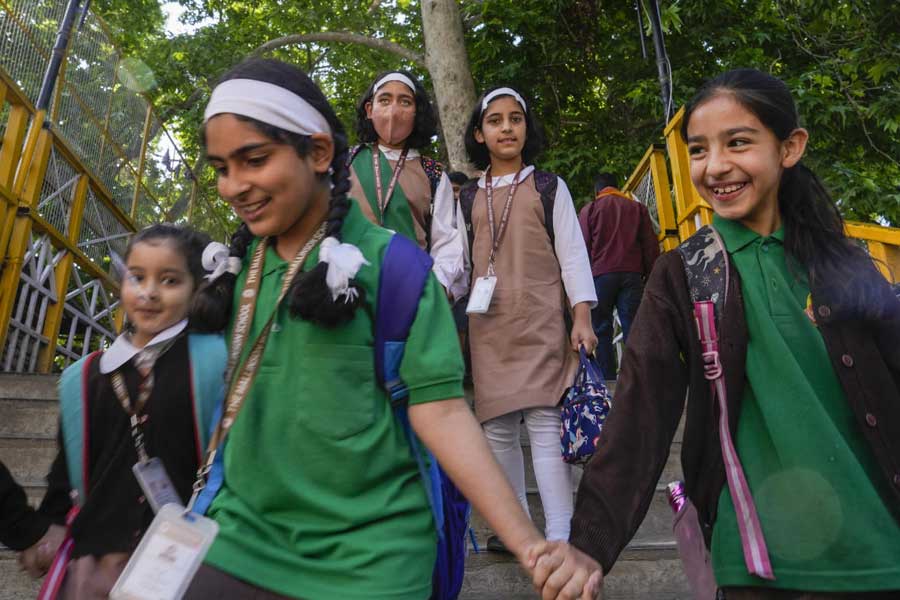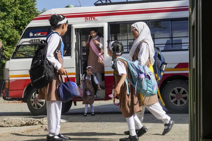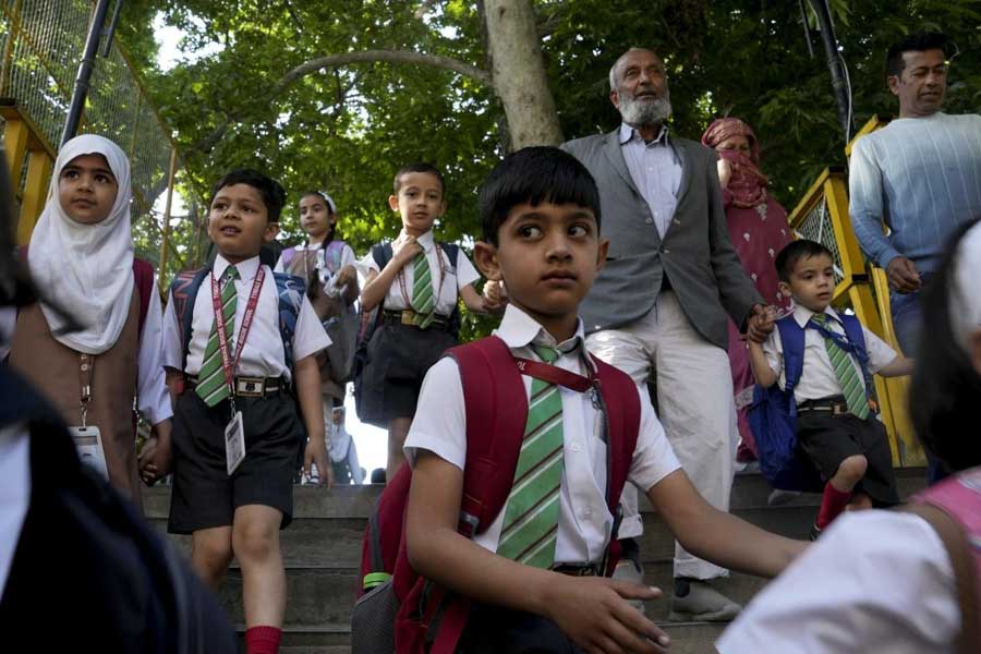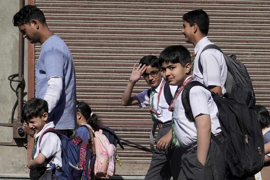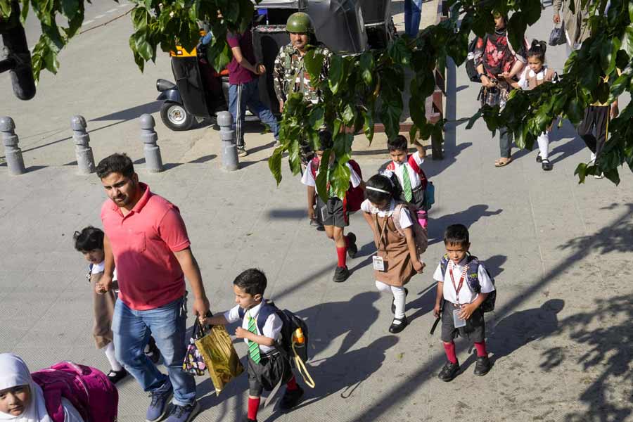 Students head to their school as educational institutions reopen in non-border districts of Jammu and Kashmir after remaining closed for nearly a week due to India-Pakistan tensions, in Srinagar, Tuesday, May 13, 2025. (PTI)